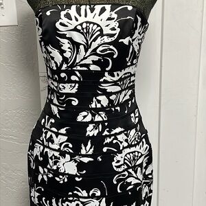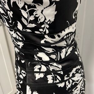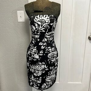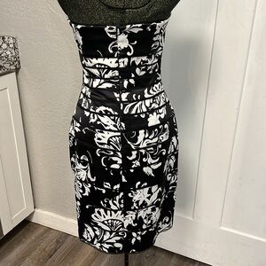 White House Black Market black & white satiny strapless dress size 2. Very good gently pre owned condition. Please check out all pics and measurements and comment below with any questions