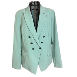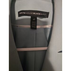 This stunning blazer by White House Black Market is the perfect addition to any professional wardrobe. With a beautiful aqua color and a ballerina trophy design, it is sure to make a statement. The jacket features a button closure and is made of a polyester blend material. The blazer is ideal for workwear and has a solid pattern.