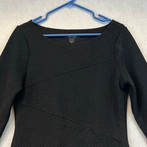 WHITE HOUSE BLACK MARKET Black Dress Medium 3/4 Sleeve Textured Knit Sheath Mini
