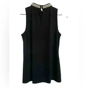 WHITE HOUSE BLACK MARKET Black Sleeveless Faux-Pearl-Neck Top