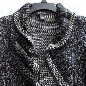 WHITE HOUSE BLACK MARKET Black & White CHUNKY Knit WOOL Blend Open CARDI Sz XXS
