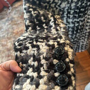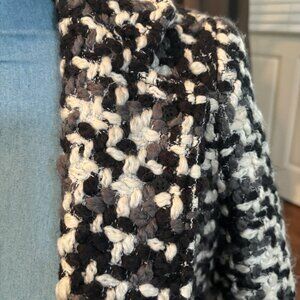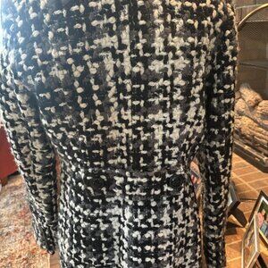 WHITE HOUSE BLACK MARKET COAT BLACK & WHITE THICK LINED CROCHET LOOK JACKET