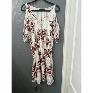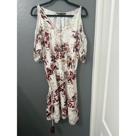 WHITE HOUSE BLACK MARKET COLD SHOULDER Floral Tie Tassel DRESS 10 Pre-owned