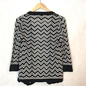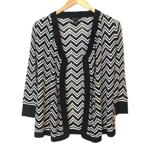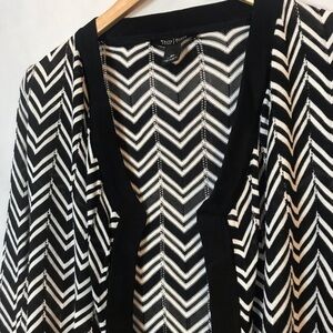 WHBM tie open front knit cardigan sweater featuring chevron intersected with lines of open pointelle stitches. 100% Rayon. Considered a tie front coverup but nicely worn as an open front cardigan as well. 26” L. Excellent, like new condition.
