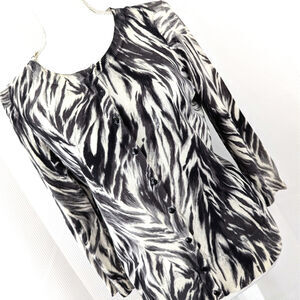 WHITE HOUSE BLACK MARKET! DRAPEY, DREAMY BLACK RUFFLED FRONT, 3/4 DRESS! SZ M