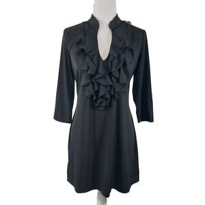 From White House Black Market, this dress is just sublime! In a lightweight black stretch, it features a front bodice of ruffles, with a deep v-front! 3/4 sleeves, DRAPEY and dreamy! Slip-on,on, Size M, Excellent! Superb EUC Condition! **ABSOLUTELY GUARANTEED CONDITION: EUC MINTY-EXCELLENT TO LIKE-NEW, by Lily @HauteClub!***