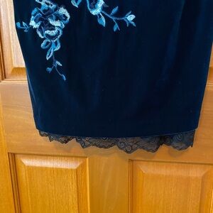 WHITE HOUSE BLACK MARKET Embroidered Stretch Velvet Dress Size Small Blue Black