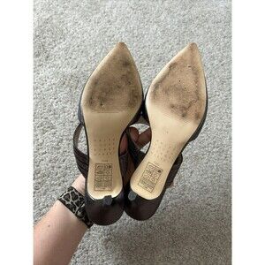Elevate your style with these stunning White House Black Market Gwen Mule heels. Crafted from high-quality leather, these pointed toe mules feature a sleek black color and slip-on closure for easy wear. The stiletto heel style adds a touch of sophistication to any outfit, while the rubber outsole provides durability and comfort. Perfect for any occasion, these heels are a must-have for any fashion-forward woman's wardrobe. Available in size US 7.5.