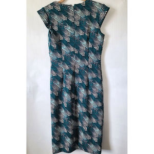 WHITE HOUSE BLACK MARKET Herringbone Dress Shift Sheath Chevron Teal Sz 4 EUC