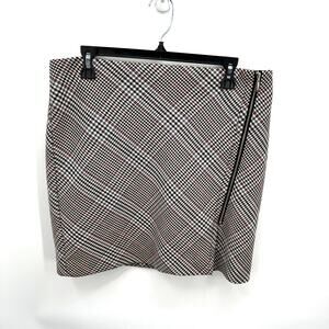 WHITE HOUSE BLACK MARKET Houndstooth Plaid Zipper A-Line Skirt // 6