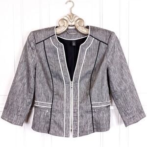 WHITE HOUSE BLACK MARKET Jacket 4 Lightweight Textured Linen Blend Stretch Zip