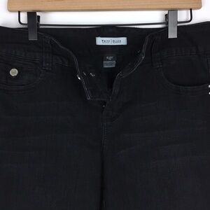 White House Black Market Jeans Blanc Rhinestone Accents Black Wash Wide Leg Flare Size 10