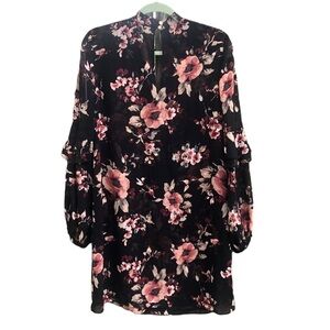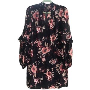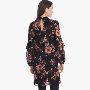 WHITE HOUSE BLACK MARKET LONG SEEVE FLORAL CHOKER SHIFT DRESS