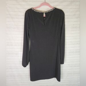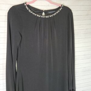 WHITE HOUSE BLACK MARKET LONG SLEEVE SHIFT DRESS PEARL/CRYSTAL NECKLINE SZ SMALL