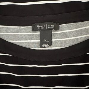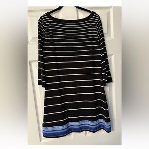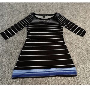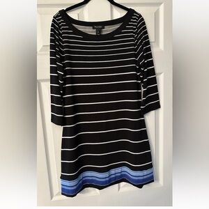 WHITE HOUSE BLACK MARKET M Black White Blue Striped Tunic Dress Silky Jersey