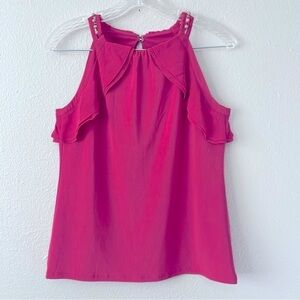WHBM pink sleeveless flutter bead trim blouse. Wear it with your favorite Jeans or slacks for a very chick look