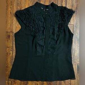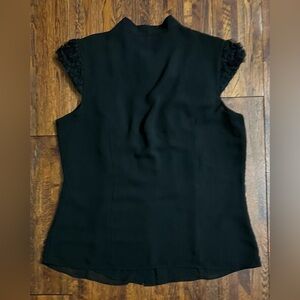 - WHITE HOUSE BLACK MARKET Ruffle Cap Sleeve Top in Black Size Medium