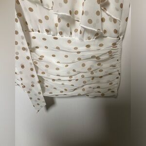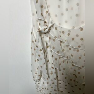 WHITE HOUSE BLACK MARKET SLEEVELESS WHITE TOP W/GOLD DOTS SIZE M w/SIDE TIE