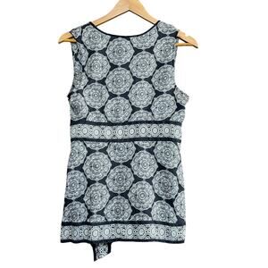 WHITE HOUSE BLACK MARKET Silk Wrap Top M Black White Paisley Mandala Tie Front