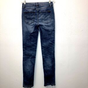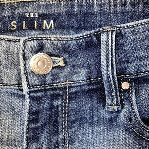 WHITE HOUSE BLACK MARKET THE SLIM - Blue Stretch Denim Jeans; 5 Pocket Design; Slim Fit; Logo Tab Size 4 - Waist-30" / Rise-9.5" / Inseam-31" . See photos for Leg Opening, Knee & Thigh Measurements.