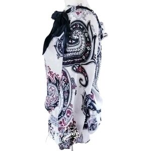 WHITE HOUSE BLACK MARKET TIE SHOULDER 100% SILK BLOUSE SZ S