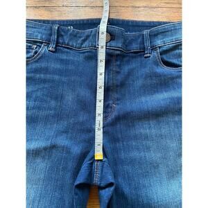 WHITE HOUSE | BLACK MARKET 'The Slim Ankle' Jeans size 12. Featuring a 5-pocket design, logo stamped rivets/button, logo metal plaque on rear pocket, stretch, silver metallic accent on leg opening and a zip fly closure.