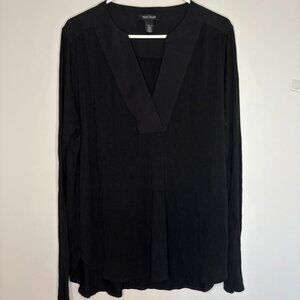 WHITE HOUSE BLACK MARKET V-Neck Tunic Large Black Long Sleeve Flowy Stretch