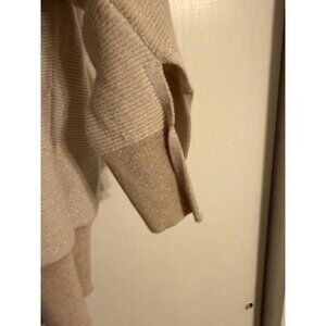 WHITE HOUSE BLACK MARKET WHBM BEIGE CREAM GOLD METALLIC SWEATER 3/4 SLEEVES SZ L