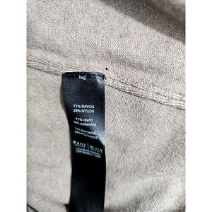 WHITE HOUSE BLACK MARKET WHBM presents a stylish and comfortable light brown knit turtleneck sweater for women in size L. The pullover style with long sleeves and a slim fit is perfect for travel, casual wear, workwear, or business occasions. The sweater is made of a rayon blend, has a tight-knit fabric type, and is machine washable.