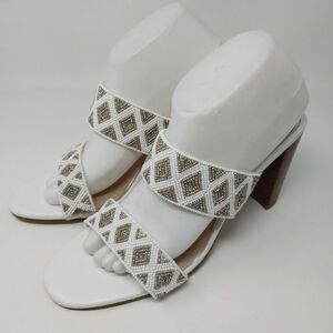 WHITE HOUSE BLACK MARKET WHITE AND GOLD BEADED SANDALS... SIZE 9.5M