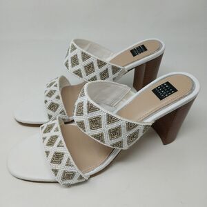 new without tags. White and gold beaded sandals. Size 9.5M. White House Black Market.
