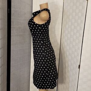 WHITE HOUSE BLACK MARKET WHITE POLKA DOT DRESS SIZE 2 COLOR BLACK WITH WHITE POLKA DOT This stylish and trendy dress is the perfect cute outfit for any fun and exciting occasion! Look chic and glam all day and night long in this adorable dress.Black with white polka dots Mini length twin side front side pockets Sleeveless Round neck Back invisible zipper closure Sheath style 96% Cotton 4% Spandex Lining: 97% Polyester 3% Spandex Has belt loops but no belt included THIS ITEMS IS PRE-OWNED EXCELLENT CONDITION WITH ONLY LIGHT SIGNS OF WEAR IF ANY CHECK THE PICTURES