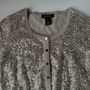 WHITE HOUSE BLACK MARKET WOMENS GOLD SEQUIN Snap Button Cardigan XS