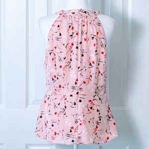 WHITE HOUSE BLACK MARKET Women's Halter Neck Blouse Top Size 6 Pink Print NWOT