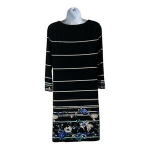 WHITE HOUSE BLACK MARKET Dress Floral Striped Blue Green Shift Sheath