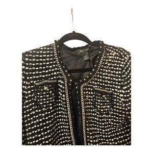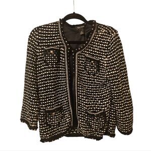 WHITE HOUSE BLACK MARKET Tweed Embellished Knit Cardigan Sweater Jacket - Medium