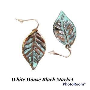 WHITE HOUSE BLACK MARKET PANTINA VERDIGRIS LEAF EARRINGS