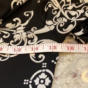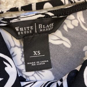 WHITE House Black Market 3/4 Sleeve Cowl Neck Size XS Black and White w/ Red