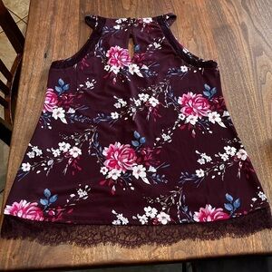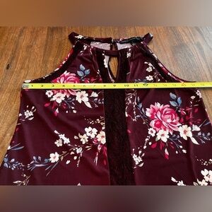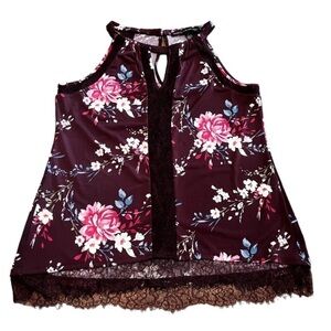 WHITE House Black Market Sleeveless Top Small Burgundy Floral Lace Embroidered