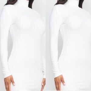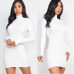 WHITE LONG SLEEVE RIBBED MOCK NECK BODYCON MINI DRESS