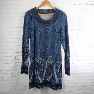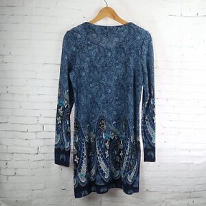 BLUE FLORAL PAISLEY LONG SLEEVE ROUND NECK MIDI SWEATER DRESS SIZE MEDIUM BY WHITE MARK PRE OWNED LIKE NEW CONDITION