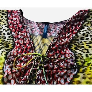 Womens, Size: 2XL Color: Multicolor: Yellow, Green Teal, Brown Orange Animal & Floral Pattern with Clear Rhinestones NWOT - Super Good Quality Condition - no rips, tares, stains, pills - Like New!