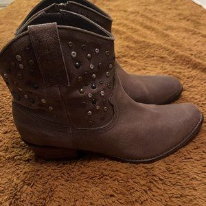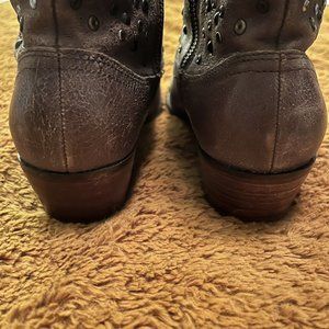 WHITE MOUNTAIN Brown Distressed Leather Rocky Studded Side Zip Ankle Boots 9.5M, Nice Distressed Look, In Nice Condition!