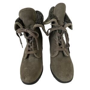 WHITE MOUNTAIN Koko Ankle Booties. Dark Gray. Lace Up. Sherpa Lined Leather. Size 9.5 Womens. Excellent condition with only minor scuffing on toe (see photos) -- no rips, stains or holes. Style #W18286.
