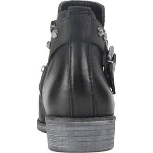 This imported moto-inspired ankle bootie features a soft, flexible outsole paired with a foam-cushioned insole for enhanced comfort. Made with synthetic materials, the boot boasts an ankle-high shaft measuring 3.5 inches and is designed with a stylish studded strap and buckle detail at the ankle. Additionally, the heel height is 1 inch, making it a fashionable yet practical choice for various occasions.
