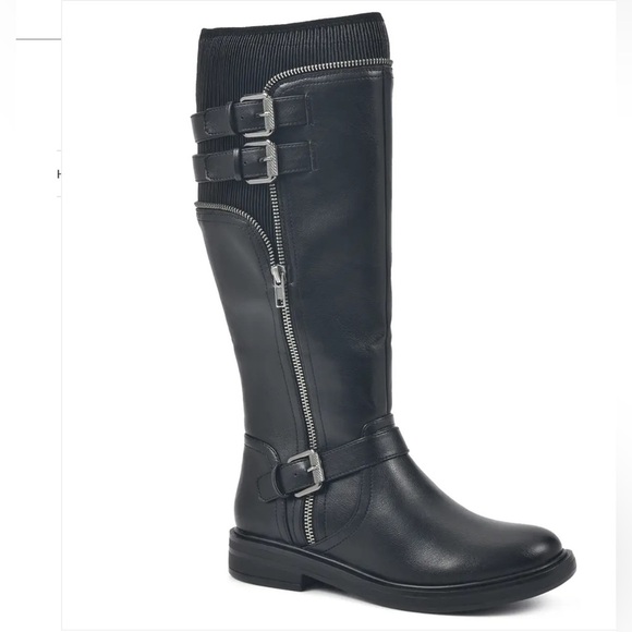Keep it classic with the Mazed tall boot by White Mountain Shoes. A decorative zipper and adjustable buckles elevate this classic riding boot to the next level. A stretch panel in the calf offers a custom fit and its inside zip makes it easy to put on and head out the door to your next adventure.