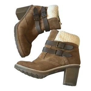 WHITE MOUNTAIN TAUPE BROWN SUEDE JOKER II 3” HEELED BOOTS + FAUX FUR