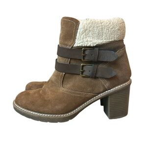 WHITE MOUNTAIN TAUPE BROWN SUEDE JOKER II 3” HEELED BOOTS + FAUX FUR, SIZE 10M