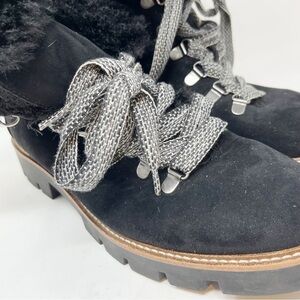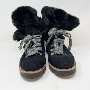 WHITE MOUNTAIN Women’s Black GLAMOROUS ANKLE BOOTIE Lug Sole Shearling Fur Sz 11. Very good pre-owned condition. Gentle signs of wear. See photos. All measurements are approximate.