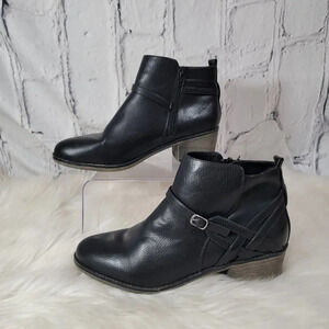 WHITE Mountain Mtn Vegan Faux Leather Black Ankle Boots Booties Buckle Moto 10 M